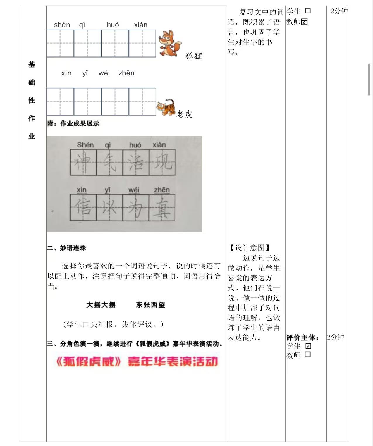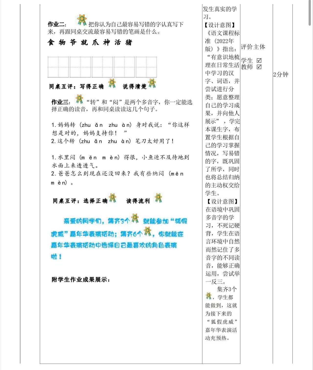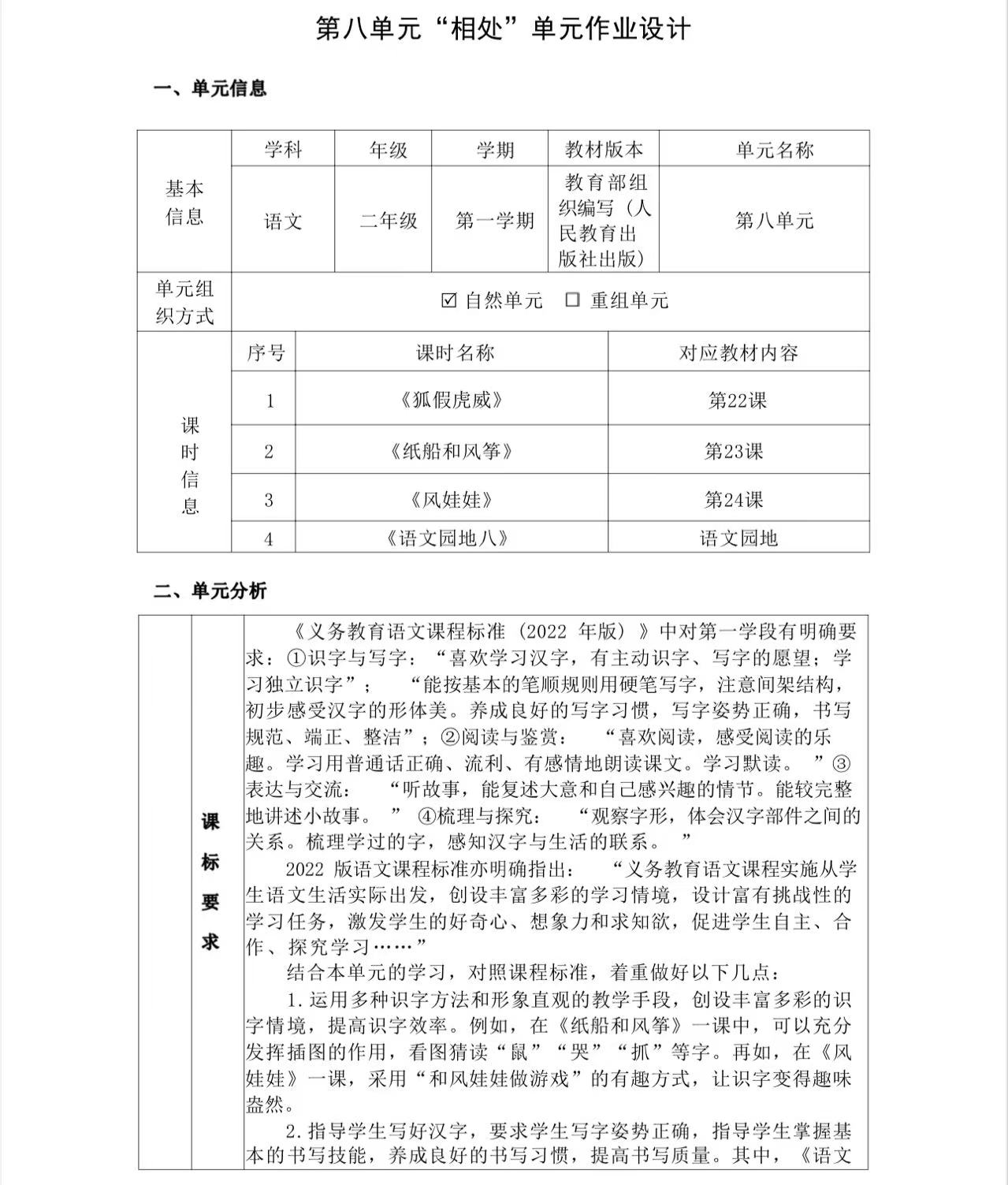 二年级上册第八单元作业设计