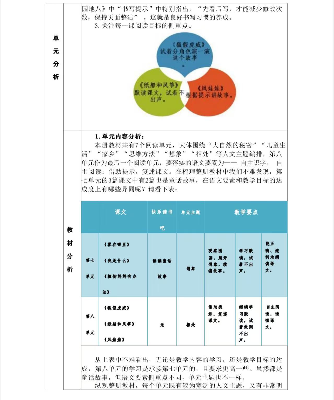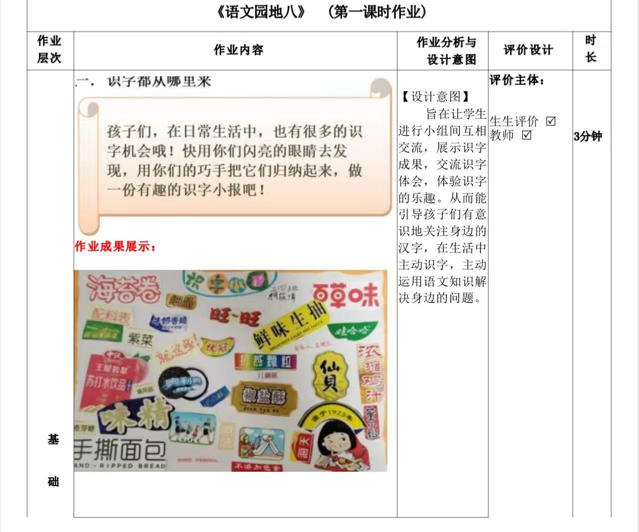 一年级下册第八单元作业设计