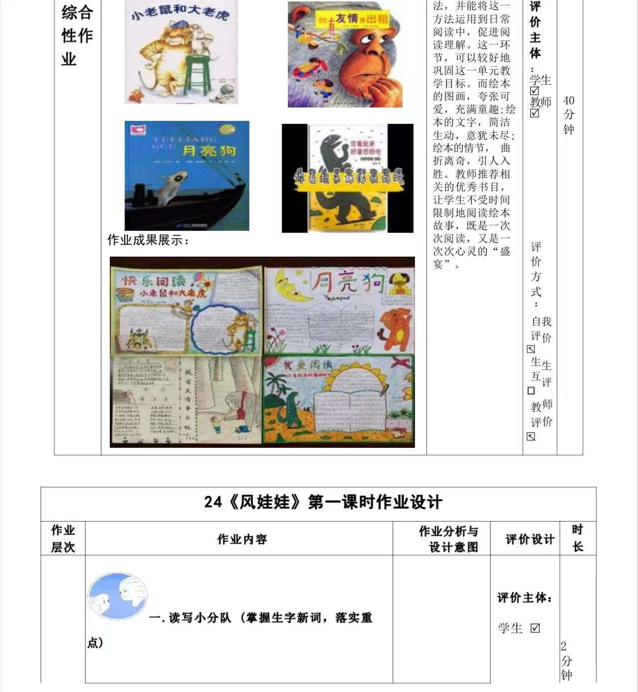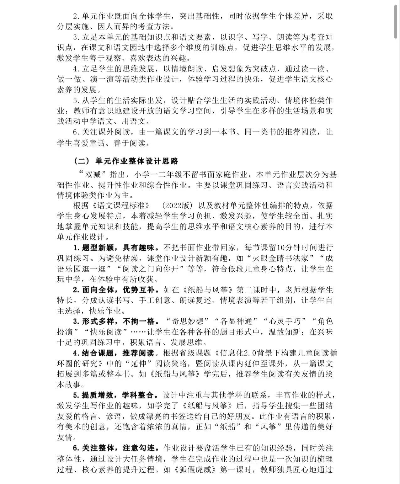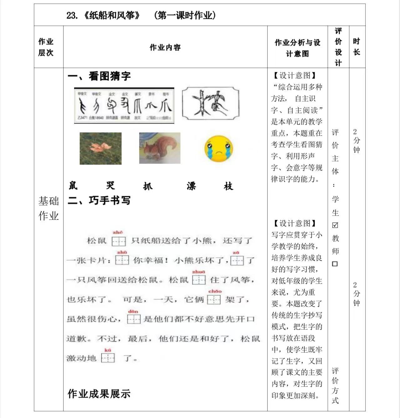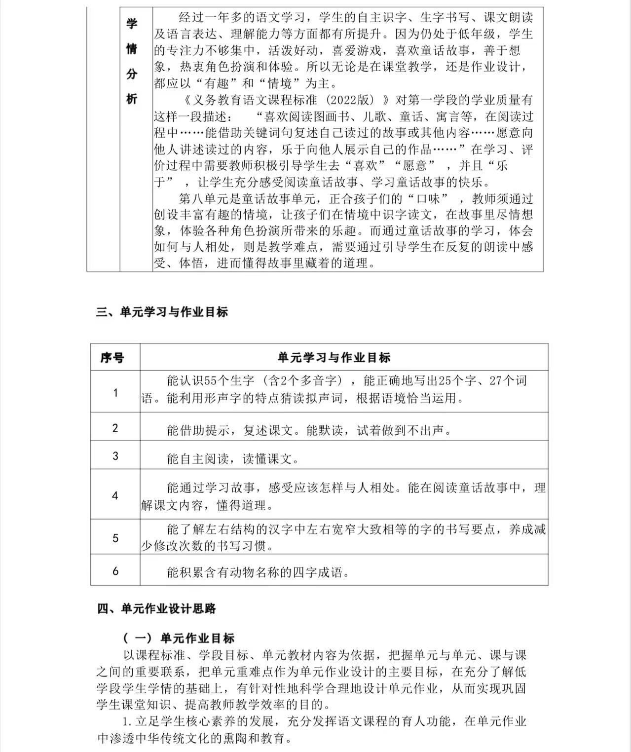 一年级下册第六单元作业设计