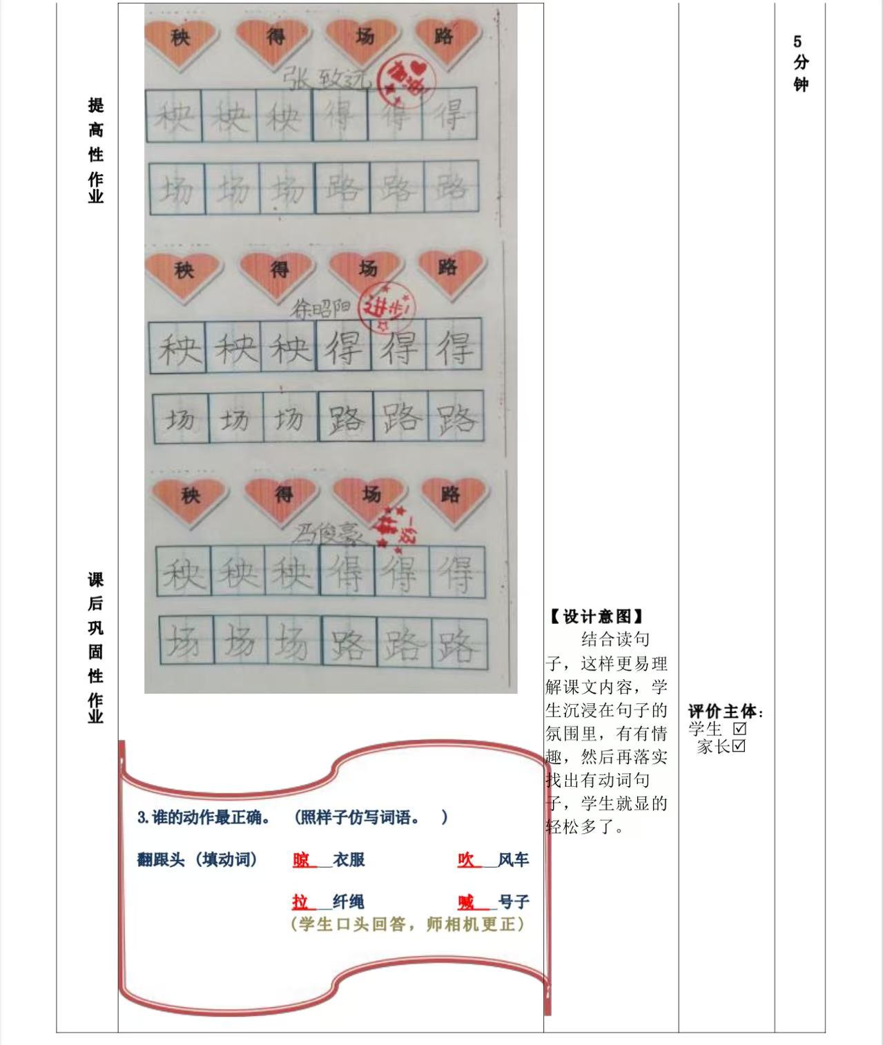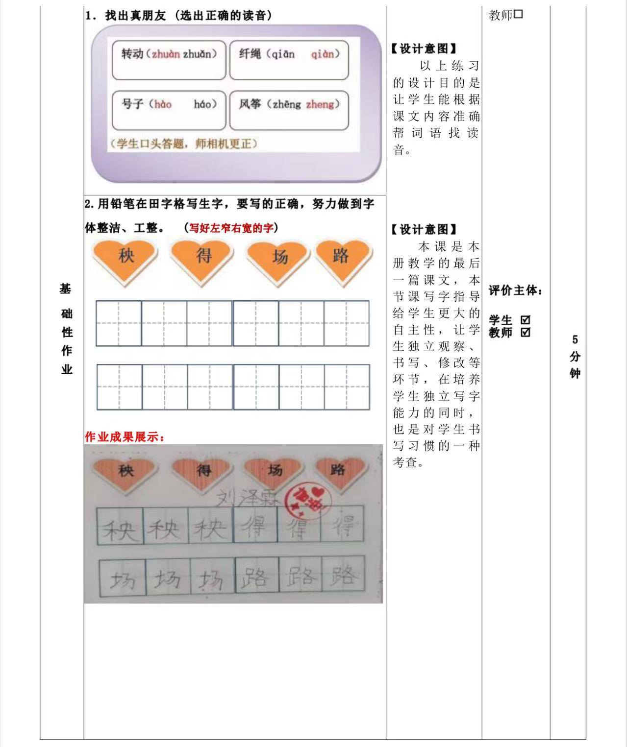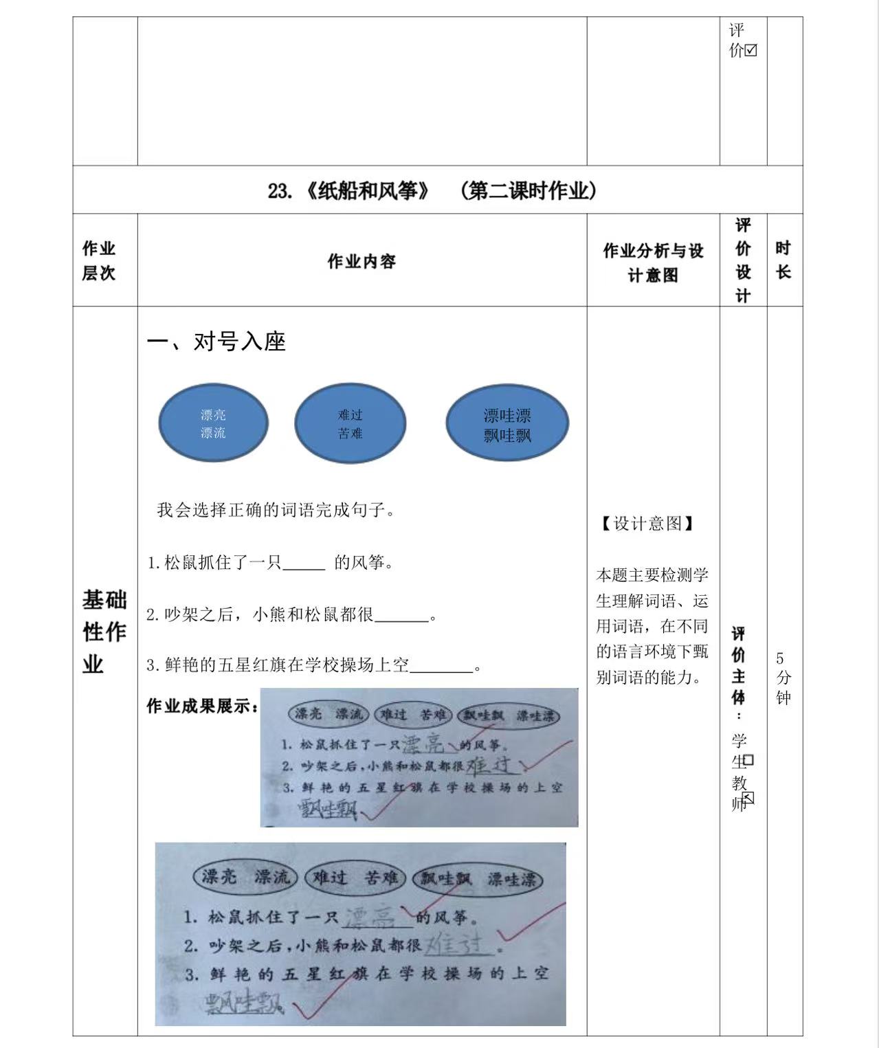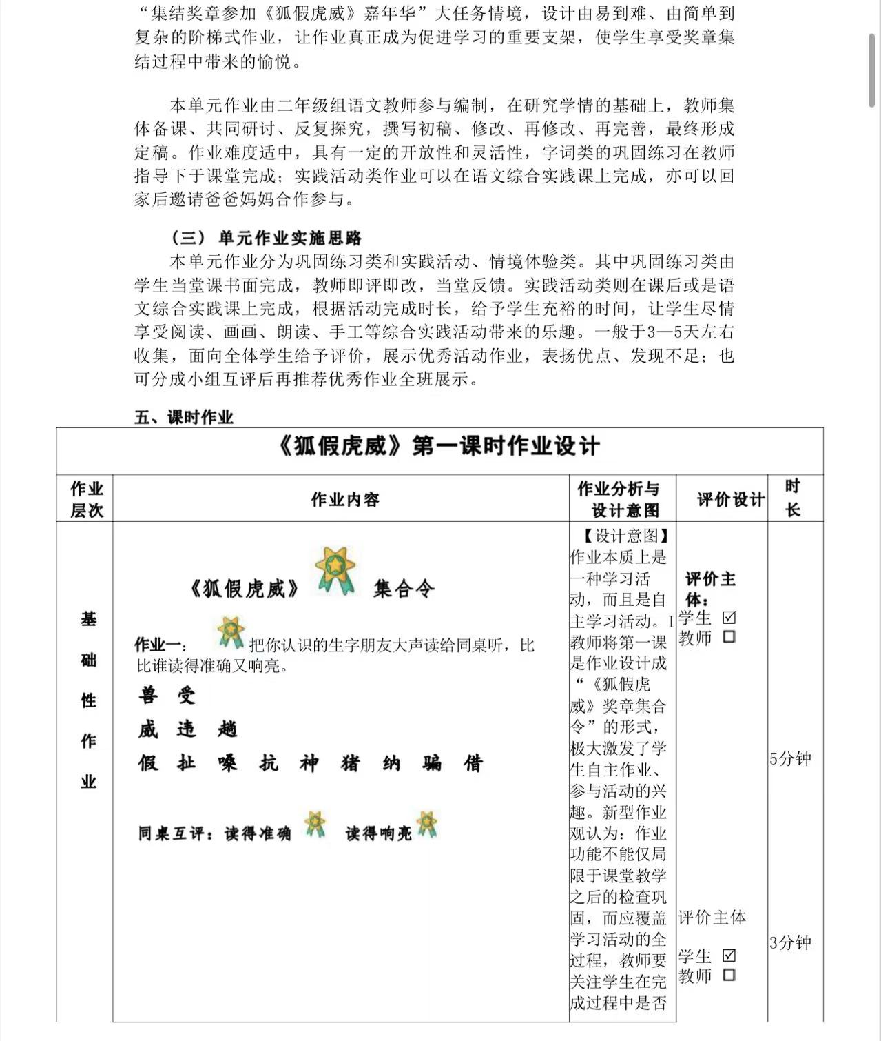 一年级下册第五单元作业设计