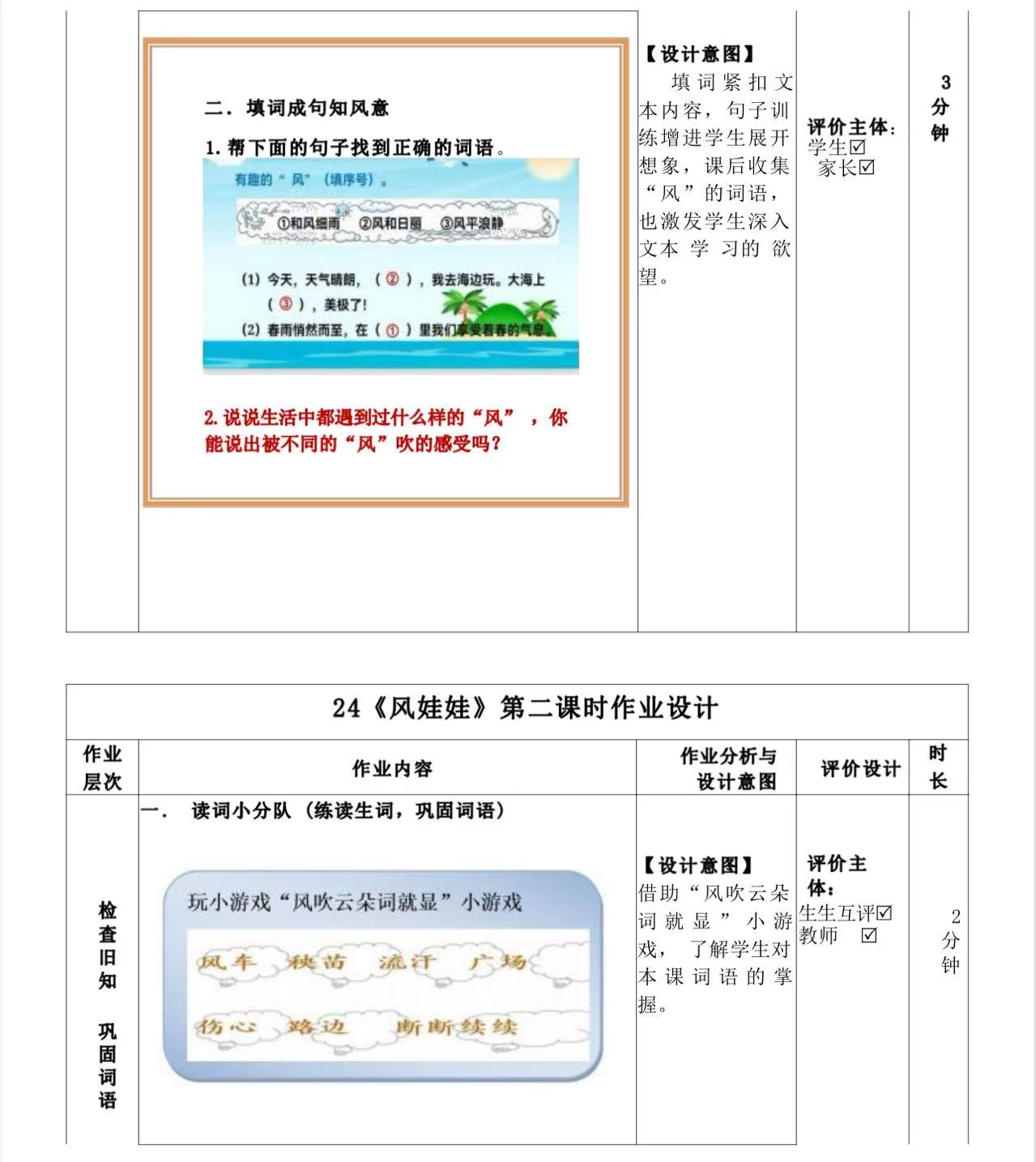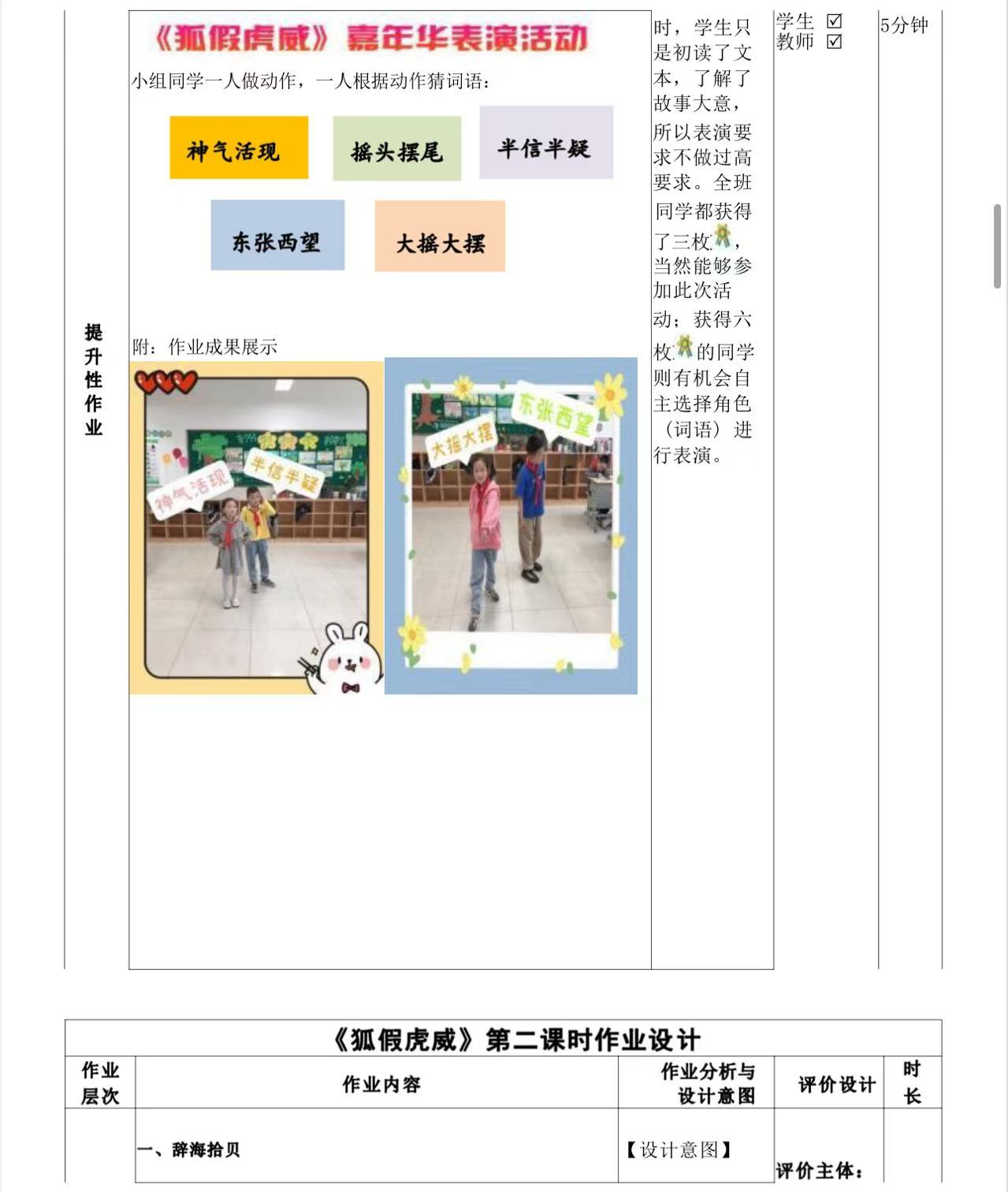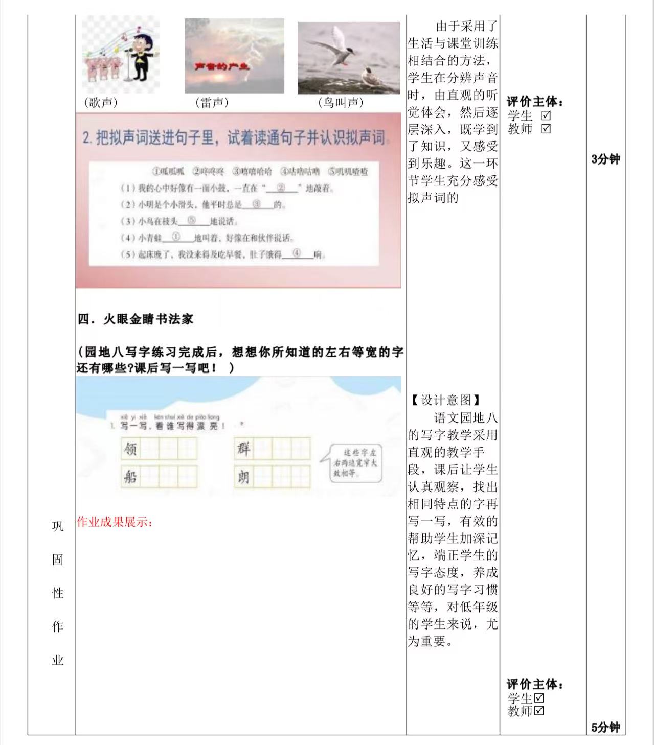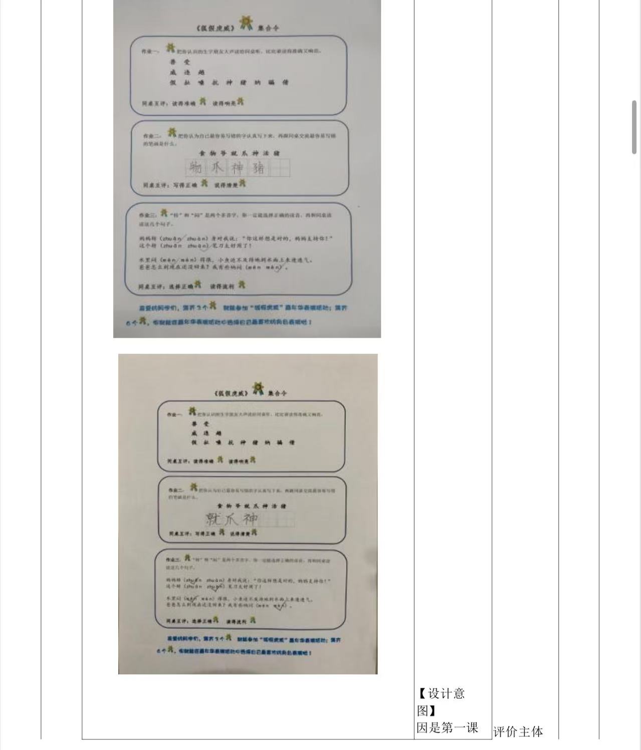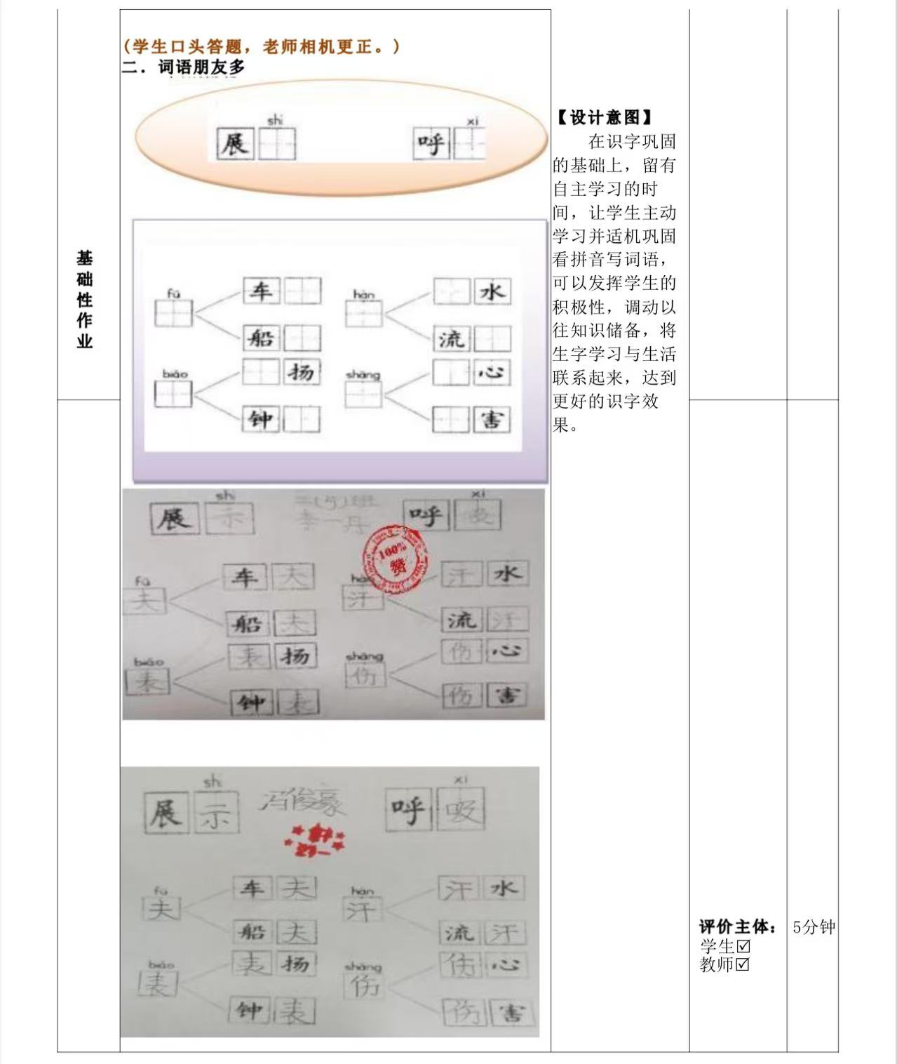 一年级下册第五单元作业设计