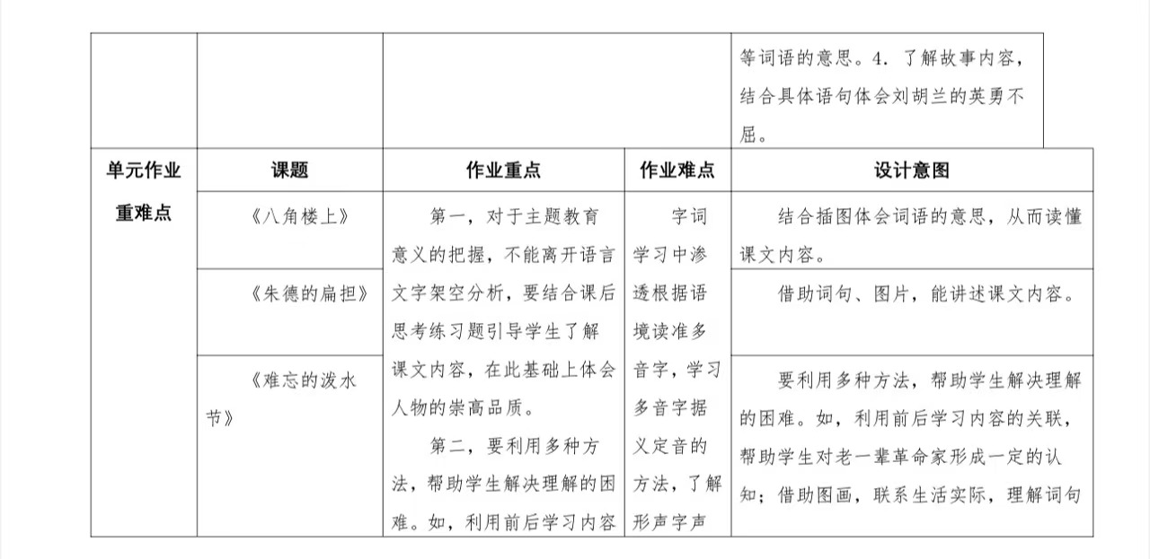 五年级上册第五单元作业设计