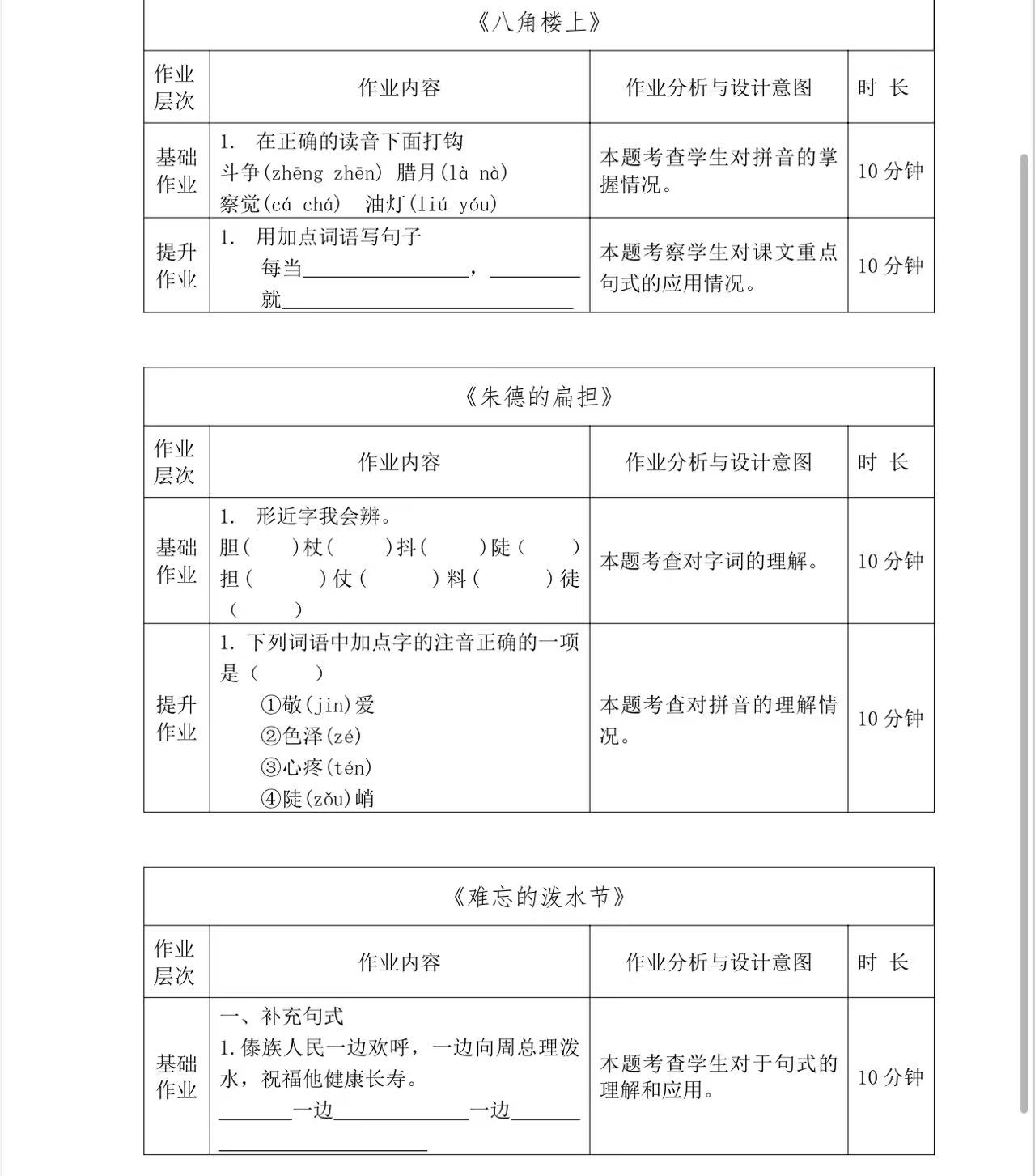 五年级上册第三单元作业设计