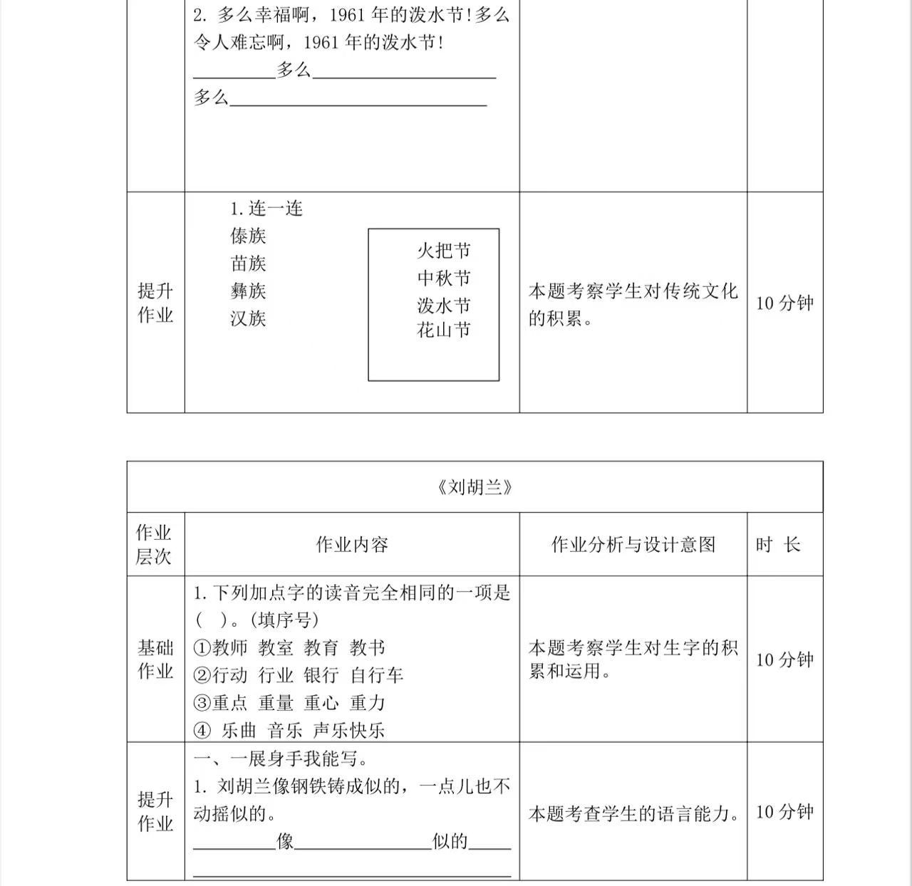 二年级上册第六单元作业设计