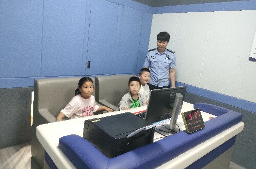 警察叔叔们热情地接待了老师和孩子们,孩子们也很有礼貌地主动和警察叔叔们打招呼。警察叔叔带孩子们依次参观了会议室、值班室、办案区等。孩子们兴致勃勃地听着警察叔叔介绍如何接警、如何进行民事调解,孩子们则围着警察叔叔问这问那,天真的笑脸、童趣的问题,让警察叔叔们感受到童真童趣、心情舒畅。警察叔叔还给孩子们介绍了常用的警用器材,警用手电筒、催泪喷剂、警棍、手铐等一系列只有在电视里才能看见的装备让孩子们大开眼界。通过警察叔叔的细心地讲解与演示,幼儿通过摸一摸,试一试,戴一戴,直观地了解了这些“武器”的作用。也对警察的工作内容有了进一步的认识。