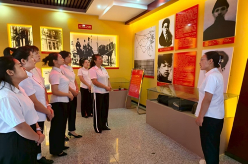 参观尾声,党员们在纪念馆的党旗下郑重宣誓。简短的誓词承载着沉甸甸的责任与信仰,是每一位共产党员对党的庄严承诺,凝聚着对党的忠诚和为理想奋斗的决心。