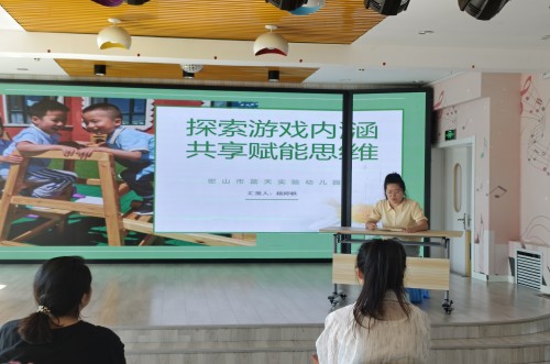 杨园长以“探索游戏内涵 共享赋能思维”为主题,结合幼儿园游戏教学实际案例,展开细致讲解。她指出,幼儿游戏是其学习与发展的重要途径,而“一对一倾听”与“游戏后分享”是挖掘游戏教育价值、促进幼儿深度学习的关键环节。