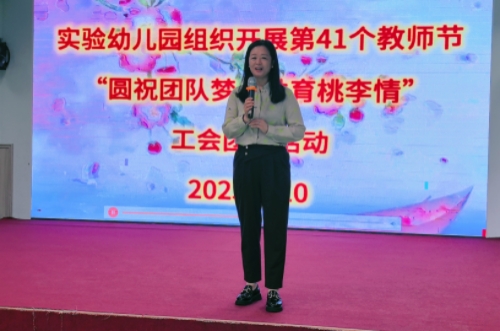 在第41个教师节来临之际,实验幼儿园工会于9月10日下午举行“圆祝团队梦·共育桃李情”教职工团建活动。武翠园长在致辞中向全体教职工致以节日问候,充分肯定教师团队在幼儿保教、家园共育中的辛勤付出与创新实践。她表示:“教师是幼儿园发展的核心力量,孩子们的点滴进步都凝聚着老师们的智慧与汗水。希望大家在保育教育工作中保重身体,继续用专业与热爱点亮孩子的童年。”