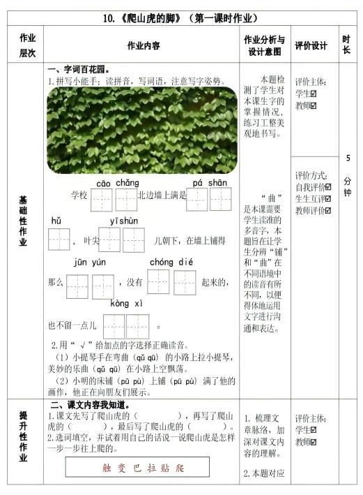 “携一缕阳光研教学,撷一捧智慧设作业。”立足本年段学情与教学内容,四年组语文教师始终围绕“减负提质”核心目标,深耕大单元作业设计。多元化的作业体系既兼顾全体学生的基础需求,又关注个体差异的个性化发展——既有夯实基础的巩固型任务,也有激发创意的拓展型项目。这不仅帮助学生在完成作业的过程中认识自我、展示自我,更以趣味化、探究性的设计点燃学习兴趣,让学生在合作交流中感受探究的快乐,在成果呈现中体验成功的喜悦,真正成为学习的主人。