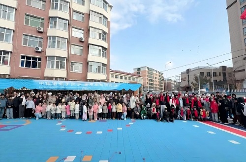 活动伊始,中俄师生代表刚踏入校园,便被可爱的卡通人偶吸引。孩子们与俄罗斯友人共同与人偶击掌、拥抱、合影,现场瞬间变成欢乐的海洋。随后,大家共同参与“安吉游戏”体验,在滚筒攀爬、积木搭建等自主游戏中,中俄小朋友默契配合、互相鼓励,用行动诠释了“游戏无国界”的真谛。