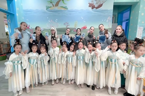 活动尾声,明德幼儿园为每位国际友人赠送了精心准备的“文化礼包”:扎染书签、剪纸、手写毛笔字卷轴……每一份礼物都承载着孩子们的祝福。中俄师生代表手持礼物合影留念,镜头定格下一张张灿烂的笑脸,也记录下这段跨越山海的珍贵情谊。