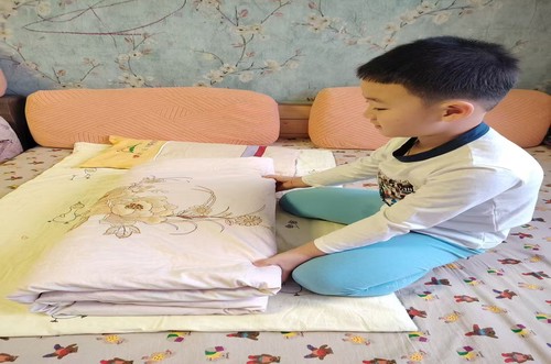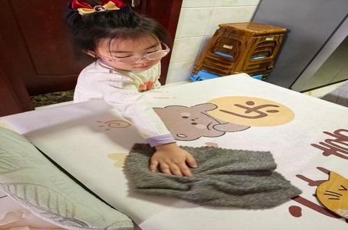 活动中,幼儿园结合大中小班幼儿认知与行为能力差异,设计了分层递进的感恩实践内容。小班幼儿以情感表达为核心,在教师引导下,用温暖的拥抱、甜甜的亲吻向父母长辈传递依赖与爱意,用肢体语言诠释感恩初心;中大班幼儿则聚焦实践体验,主动承担力所能及的家务劳动,为劳累的长辈捶背、洗脚,动手刷碗、扫地、整理鞋袜,在亲身实践中体会家人的辛劳付出,将感恩之心转化为具体行动。同时,各班级通过绘本共读、PPT讲解等辅助形式,将抽象的“感恩”概念具象化,帮助幼儿理解亲情的珍贵与付出的意义,让感恩理念入脑入心。