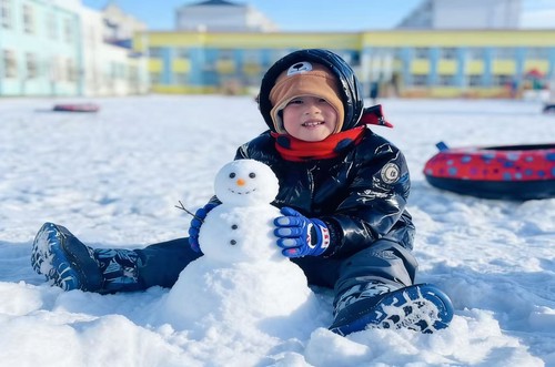 活动中,教师结合幼儿认知规律,通过动画、图片、绘本等直观形式,讲解大雪节气的由来、气候特征及“腌肉”“进补”等传统习俗,在互动问答中让节气知识轻松扎根。针对不同年龄段特点,幼儿园设计分层活动:小班以“防寒保暖”为核心,通过情景模拟、儿歌传唱,帮助幼儿掌握衣物穿戴技巧,提升生活自理能力;中班开展“快乐手工小雪人”创作,幼儿用彩纸、棉花、纽扣等材料打造特色作品,锻炼想象力与动手能力;大班幼儿走进户外,堆雪人、打雪仗、踩雪印,在亲近自然中感受东北冬日风情,培养勇敢坚强的品质。