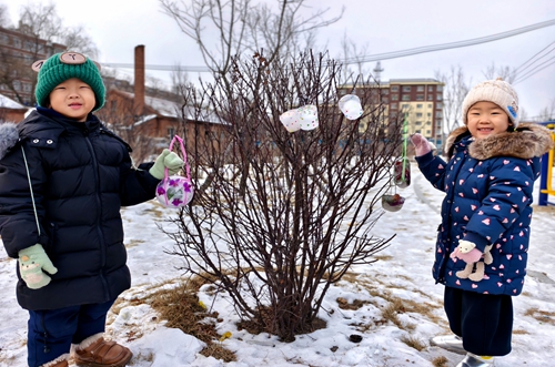 为了激发孩子们的科学兴趣,提高孩子们的动手能力,冻冰花活动就这样拉开了帷幕。小班的孩子在教师的指导下放材料、倒入水。所有步骤一气呵成,孩子们兴趣盎然、乐在其中。一朵朵精致的冰花在自己的手中绽放,孩子们感觉到无比的快乐和满足。中班的的小朋友们更是动手巧思,给大树穿新衣,用他们灵巧的小手展现出冬天的一切美好,孩子们开心的玩着传统游戏一起感受游戏的乐趣,体味了传统文化的节奏美、韵律美和意境美,从古人的智慧和情怀中涵养心灵。