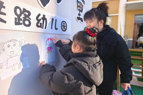孩子们带着精心准备的自画像,满怀欣喜地走进幼儿园。在老师的引导下,大家纷纷将专属自己的自画像,郑重地贴在“生长的力量”主题大板上,用独特的方式留下新学期的第一个印记。一张张可爱的自画像汇聚在一起,构成了充满童真与活力的风景,孩子们驻足打卡、合影留念,脸上洋溢着灿烂的笑容,定格下开学的美好瞬间。