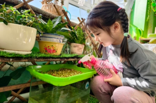 小班的萌娃们用最稚嫩的方式开启护绿之旅。他们跟着老师欢快学唱儿歌《植树节》,在歌声中感受春天与绿意;在班级植物角里,孩子们化身勤劳的“小小园艺家”,小心翼翼地为小花小草浇水、除草,睁着好奇的眼睛仔细观察盆栽的变化,认识不同形状的叶子与色彩缤纷的花朵。他们手持小铲子、小水杯,认真投入、分工协作,小小的身影充满力量,成为校园里最温暖可爱的风景。