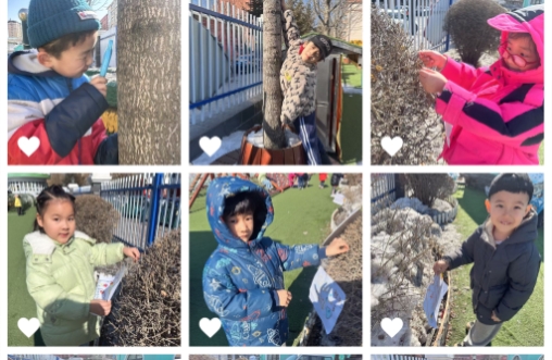大班的哥哥姐姐以更深入的实践探索自然奥秘。他们积极参与种植实践活动;亲手设计并制作别具心意的护绿提示牌、环保宣传牌与成长记录册,用文字与图画记录绿色心愿;在户外自然探索中,孩子们仔细观察树皮的纹路、树叶的形态,合作测量树高,在探索中发现大自然的神奇与美好。