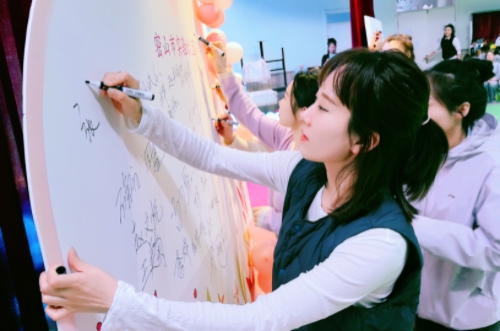 教师在签名墙上签名