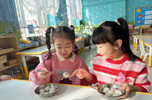 最令人期待的“甜蜜时刻”终于到来!幼儿园为宝贝们精心准备了热气腾腾的汤圆。当一碗碗软糯香甜的汤圆端上桌,孩子们的脸上洋溢着幸福的笑容。大家拿起小勺子,细细品尝着汤圆的美味,有的宝贝还会指着碗里的汤圆,和小伙伴分享:“这个汤圆和我做的一样可爱!”