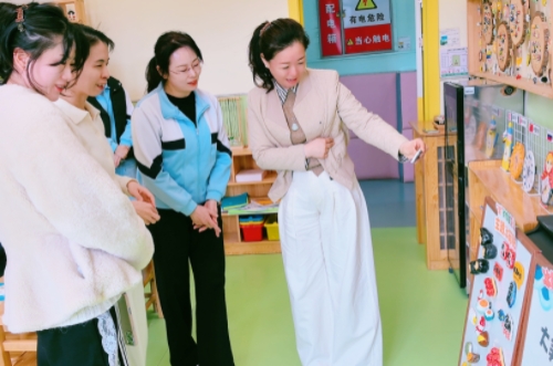 随后,来到铁路幼儿园,园长刘玉辉及两名副园长陪同接待。大家先后走进温馨舒适的托育班和瓷器小作坊,师幼共同创作的精美瓷器作品,充分展现了园所特色课程成果与幼儿的动手、想象能力。